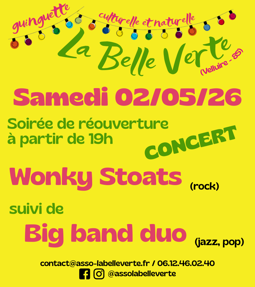 Lors des ouvertures en soirées et weekends, en plus du bar et de la restauration (planches apéro, foodtrucks, …), La Belle Verte propose des animations artistiques (concerts, spectacles, projections, …) et des animations socio-culturelles (soirées jeux, ateliers inter-générationnels, conférences gesticulées, soirées thématiques,…).